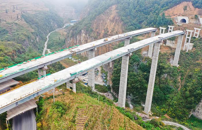 【工程概況】鎮(zhèn)果公路三分部五谷大橋左幅全長345米,孔跨布置為:50+60+2×70+3×28.5米鋼混組合梁+預(yù)應(yīng)力混凝土T梁,先簡支后連續(xù)結(jié)構(gòu);右幅全長364米,孔跨布置為:60+3×70+3×28.5米鋼混組合梁+預(yù)應(yīng)力混凝土T梁,先簡支后連續(xù)結(jié)構(gòu),最大墩高103米,為鎮(zhèn)果公路項目重點控制性工程。