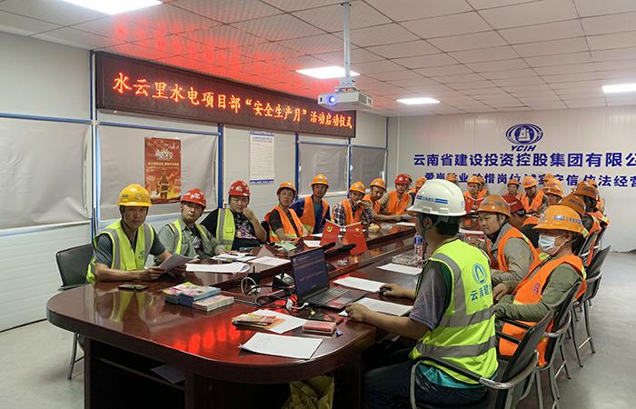 在第20個(gè)全國“安全生產(chǎn)月”活動(dòng)開展之際,6月19日下午13點(diǎn)晉寧水云城水電項(xiàng)目部舉行了安全月啟動(dòng)儀式,參會(huì)人員由項(xiàng)目部管理人員、勞務(wù)班組長、勞務(wù)班組人員等共26人。