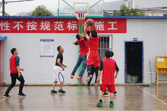 乒乓球雙打比賽運(yùn)動員們凝神屏氣,一決高下;籃球賽上運(yùn)動員們盡情展現(xiàn),觀眾們歡呼聲不斷;“兩人三足”接力賽更是趣味橫生,每組隊(duì)伍派出4對選手以男左女右腳捆綁進(jìn)行接力賽,運(yùn)動員們并肩前進(jìn)奔跑,時不時出現(xiàn)的雙腳和身體不協(xié)調(diào)的滑稽樣子引來大家開懷大笑;拔河比賽將運(yùn)動會的氣氛推向了高潮:各參賽隊(duì)比賽前圍成一個圈低聲探討獲勝“天機(jī)”;賽前隊(duì)員們都摩拳擦掌鼓足了勁兒,隨著裁判的哨子吹響,場上的加油聲一陣高過一陣。天氣雖有點(diǎn)灰蒙蒙,但是大家的熱情很高漲,項(xiàng)目部上空時不時傳來大家的歡聲笑語,好一派熱鬧的場景!