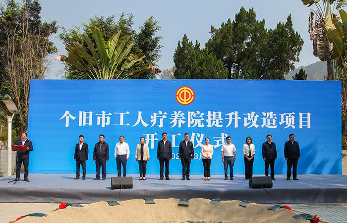 3月18日上午,由集團五公司承建的個舊市工人療養(yǎng)院提升改造項目舉行開工儀式,省總工會黨組成員、副主席李琦出席儀式并宣布項目開工。紅河州政協(xié)副主席、州總工會主席張艷梅,集團公司黨委副書記、工會主席陳文雙出席儀式并講話,紅河州總工會黨組書記、常務副主席姜云主持儀式。