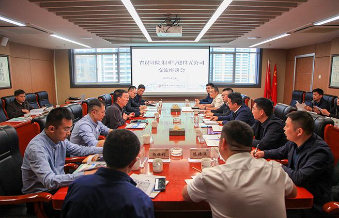 省設計院集團副總經理沈家忠主持座談會。公司黨委書記、副董事長蔣璽,黨委副書記、副董事長、總經理付雋蒼,黨委委員、副總經理仲金榮出席會議。