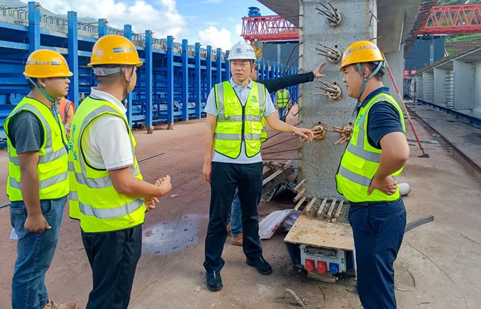 在項(xiàng)目一線,石俊一行深入每一個(gè)施工點(diǎn)位,重點(diǎn)了解施工點(diǎn)位的節(jié)點(diǎn)、施工便道硬化的情況、梁場(chǎng)的生產(chǎn)進(jìn)度和質(zhì)量、隧道進(jìn)洞的速度,并對(duì)施工管理和安全生產(chǎn)提出要求。