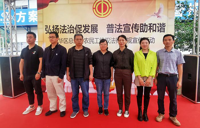 8月24日,五華區(qū)總工會(huì)到公司五〇四直管項(xiàng)目部承建的西城時(shí)代西錦里項(xiàng)目開展農(nóng)民工維權(quán)法律法規(guī)宣傳活動(dòng)。五華區(qū)總工會(huì)副主席馬悅雯,五華區(qū)勞動(dòng)保障監(jiān)察大隊(duì)大隊(duì)長(zhǎng)陳軍龍,黑林鋪街道黨工委副書記、總工會(huì)主席劉剛,公司工會(huì)主席冷蕊出席活動(dòng)。