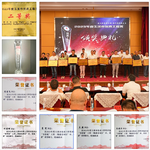 近日,在2023年度玉溪市優(yōu)質(zhì)工程獎頒獎典禮上,由公司五〇一直管項目部負責施工的江川區(qū)“書香苑”工程二期建設(shè)項目榮獲“2023年度玉溪市優(yōu)質(zhì)工程二等獎”榮譽,項目經(jīng)理謝國飛榮獲“優(yōu)秀項目經(jīng)理”稱號,項目技術(shù)負責人代榮輝、項目管理人員木毅、李智以及朱福全等4名同志榮獲“突出貢獻者”稱號。