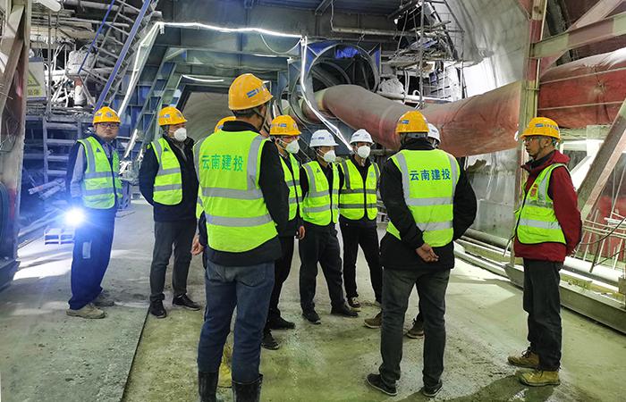 匡浩一行深入施工現(xiàn)場(chǎng),詳細(xì)踏勘隧道內(nèi)各個(gè)作業(yè)面施工情況,聽取項(xiàng)目負(fù)責(zé)人關(guān)于施工組織、現(xiàn)場(chǎng)推進(jìn)、安全文明施工和成本管控等方面的情況匯報(bào)。