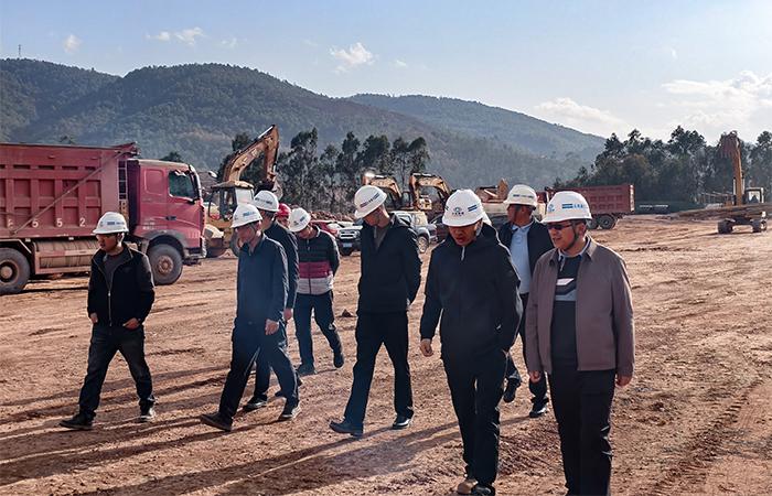 楊永一行實地查看項目規(guī)劃布局,聽取項目部對現(xiàn)場土方的開挖、運送及碎石等工作的安排,并對接下來的工作開展做出要求。