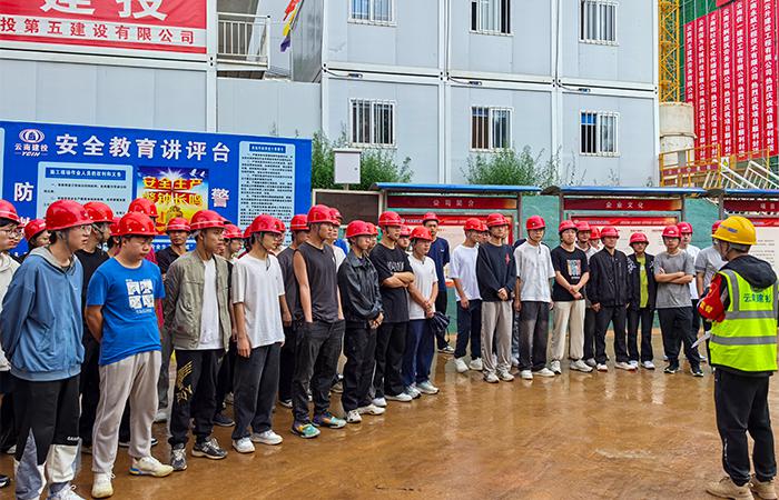 為保障此次校企合作活動安全、高效進(jìn)行,項目部提前周密部署,制定了詳細(xì)的參觀流程和安全預(yù)案。進(jìn)入現(xiàn)場前,項目安全員對全體師生開展嚴(yán)格的入場安全技術(shù)交底,強(qiáng)調(diào)現(xiàn)場注意事項,確保師生安全。