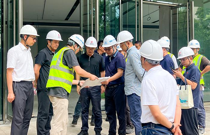 李軍一行深入項(xiàng)目現(xiàn)場,通過查閱施工圖紙、實(shí)地查看辦公樓功能布局及使用效果,全面了解施工組織及現(xiàn)場管理情況,對項(xiàng)目當(dāng)前的進(jìn)度推進(jìn)和質(zhì)量管理成效表示肯定。