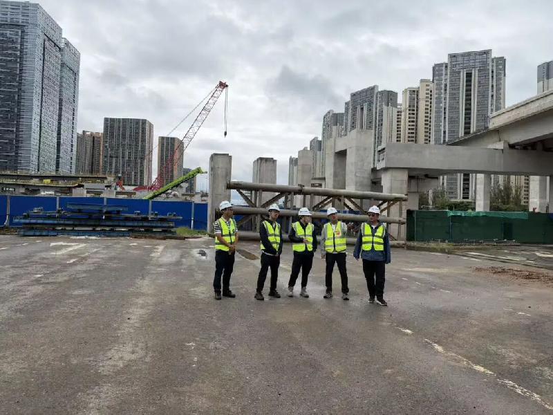 李強、匡浩詳細查看項目施工進度、安全、質量、文明施工等管控情況,細致了解現(xiàn)階段項目施工過程中存在的問題及下步施工工作計劃,對項目四季度生產進度、安全管理等方面提出具體要求。