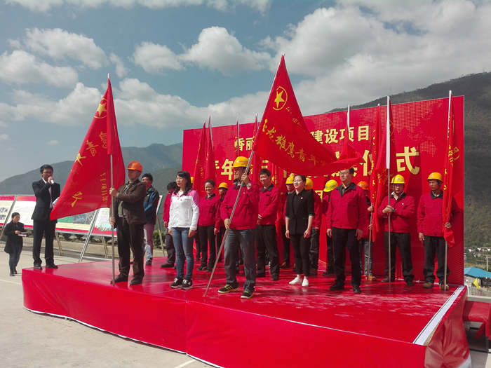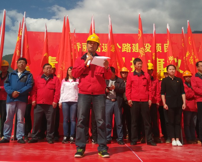 香麗高速項目青年突擊隊共計20支,由各個參建單位分別組建而成,香麗高速公路項目指揮部臨時黨總支書記鐘云誠、集團團委副書記楊瑜及香麗高速指揮部副指揮長李雄周、總工程師李德宏為青年突擊隊授旗。公司“玉龍雄鷹”青年突擊隊由香麗路項目駐地公司年輕副總經(jīng)理楊永擔任隊長,項目部35歲以下青年職工共計66人組成,公司青年突擊隊代表馬勇在此接受隊旗并代表項目部表態(tài)發(fā)言。根據(jù)青年突擊隊競賽考核書,本次青年突擊隊競賽活動從2016年6月1日至2016年12月31日止,以“安全、質(zhì)量、進度、創(chuàng)新、團隊建設(shè)和形象”為主題開展。