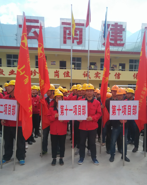5月6日,香麗高速公路土建施工第九項目部9-3工區(qū)駐地處旌旗飄揚,隨著“轉(zhuǎn)型升級,青春沖鋒!”的口號聲和《建投之歌》的主旋律,公司香麗高速公路建設(shè)項目第十一標段“玉龍雄鷹”青年突擊隊正式授旗成立。