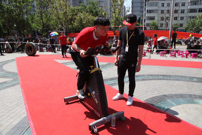 “加油!加油!”伴隨著一陣陣歡呼雀躍聲,昆明市工人文化宮廣場上正在激烈地進行一場全民健身運動會,在場的運動員們整裝待發(fā),他們或3人一組配合沖關(guān)或1人一組“獨創(chuàng)龍?zhí)丁?,待裁判一聲令下便開啟酷跑大沖關(guān)的模式。