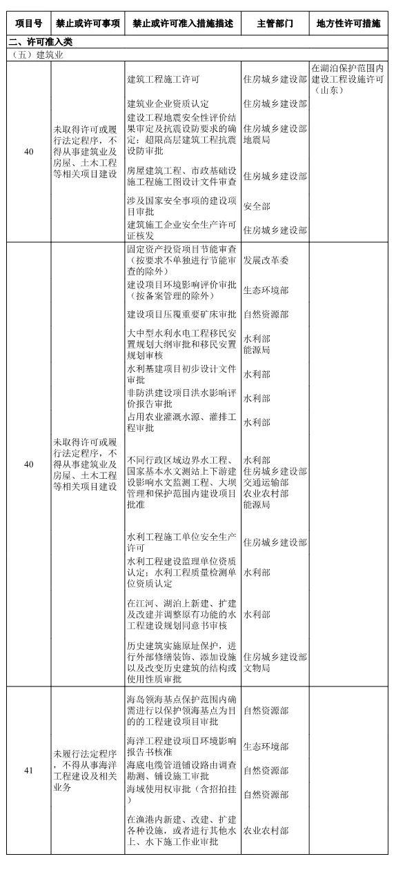在2019版《市場準(zhǔn)入負(fù)面清單》中,與建筑業(yè)相關(guān)的事項(xiàng)與規(guī)定有:
