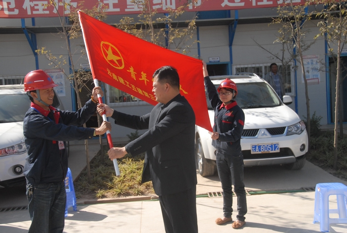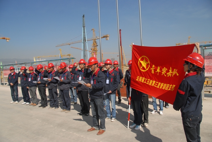 2012年11月23日,第三直管部玉溪公租房項目部青年突擊隊正式成立,公司黨委書記李興奎,黨委副書記、紀(jì)委書記吳倩等領(lǐng)導(dǎo)到項目部為青年突擊隊授旗,并要求要著力將這支青年突擊隊打造成為西南西北八省區(qū)建筑業(yè)中優(yōu)秀的青年突擊隊。