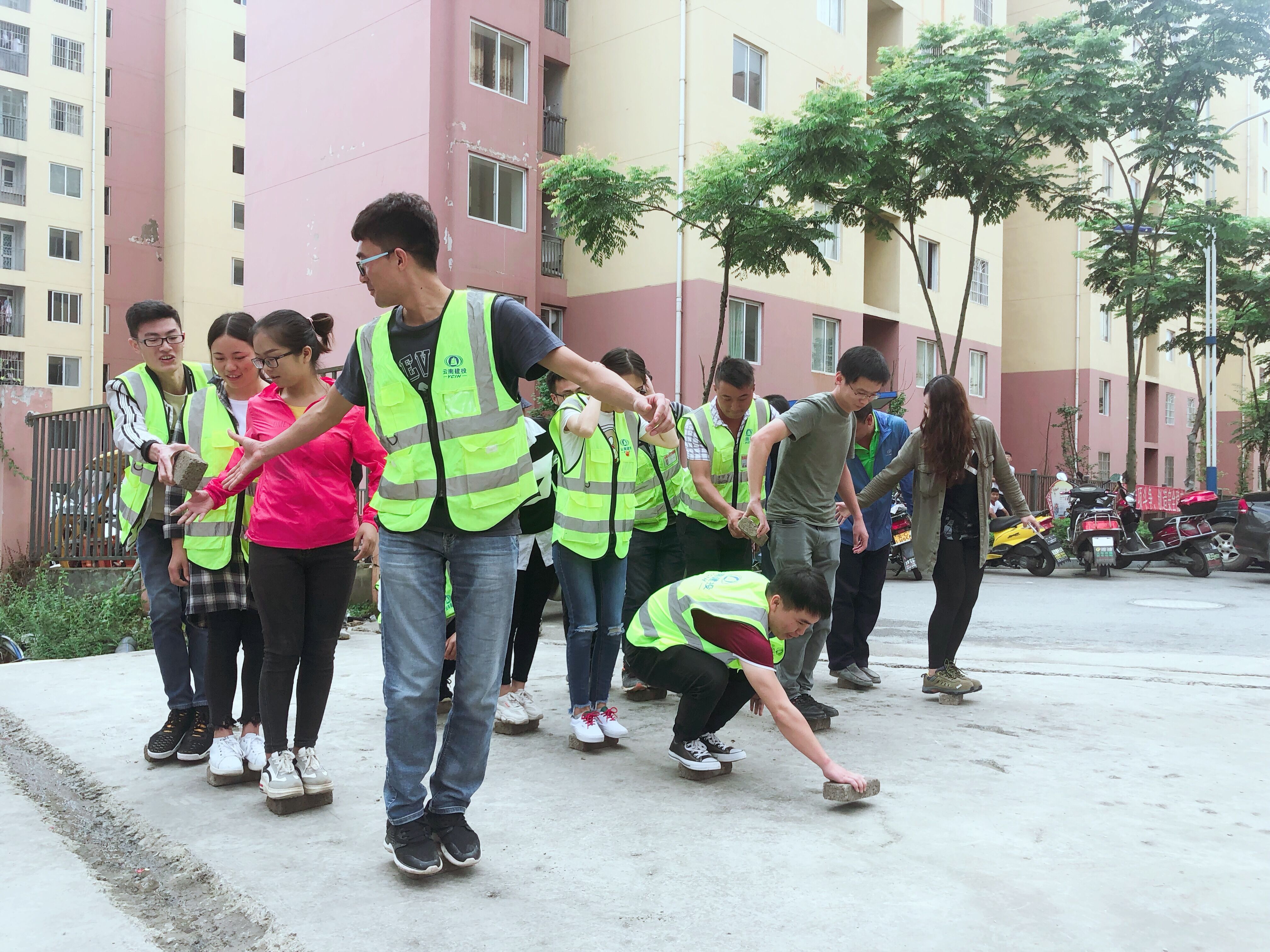 會(huì)后,戶(hù)外團(tuán)建活動(dòng)正式開(kāi)始,文體委員陳彥羽認(rèn)真講解游戲規(guī)則,并將大家分為四組進(jìn)行游戲比拼。接力游戲考驗(yàn)團(tuán)隊(duì)協(xié)作能力,大家互相鼓勵(lì)吶喊,積極配合;吹乒乓球環(huán)節(jié)增加難度,要求必須使用“爆破音”,大家使出渾身解數(shù),顧不上面粉糊臉,努力吹出更多數(shù)量的乒乓球。在搬磚接力游戲中,大家利用從項(xiàng)目上借來(lái)的搬磚,前后接力傳送磚頭,盡力將磚頭扔得更遠(yuǎn)一些,都為爭(zhēng)取最后的勝利而努力。