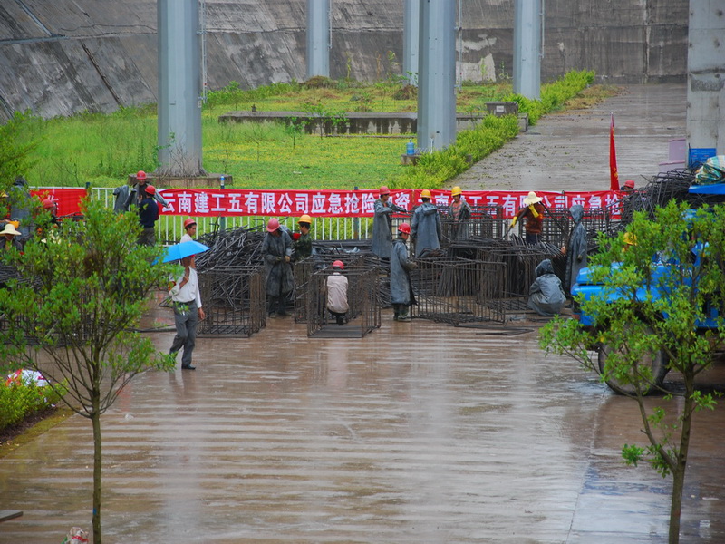 下午,材料到場(chǎng),組織景秀西苑項(xiàng)目部五個(gè)標(biāo)段及外調(diào)鋼筋工通宵制作,遇兩場(chǎng)大雨。晚十點(diǎn),開(kāi)始裝車(chē)。