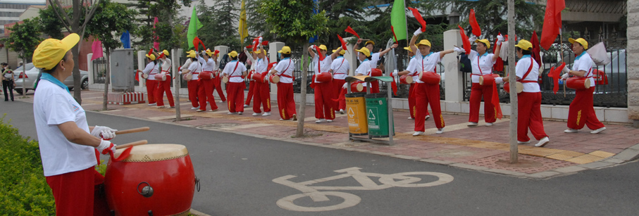 退休女工腰鼓隊為開閉幕式增添了喜慶氣氛。