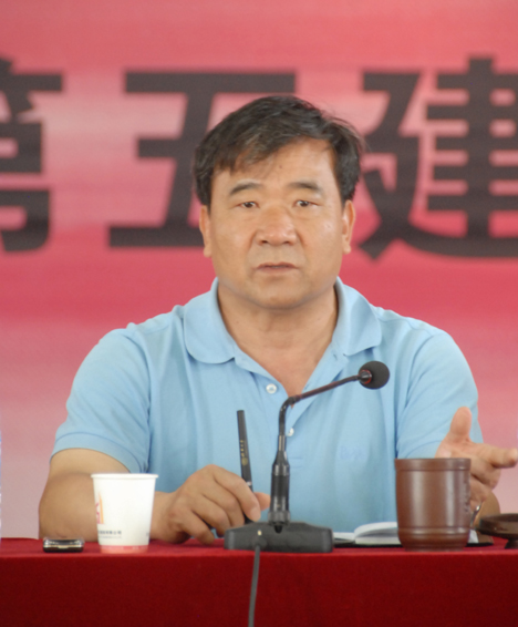 圖為5月10日公司董事長楊福和在第五直管項目部機(jī)構(gòu)調(diào)整動員會上講話