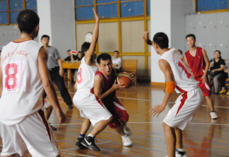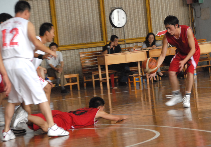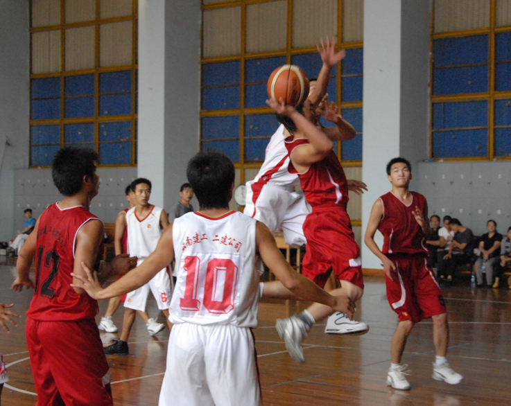 開賽后,他們同心協(xié)力,一度以17比9領(lǐng)先,逼對方換上了主力隊員。雖然此后形勢急轉(zhuǎn)直下,比分被對方反超,但五建上場隊員們?nèi)匀σ愿?,頑強拼搏,絕不放棄. 對方由于有10多名隊員輪換,而五建上場的6名隊員基本無法輪換,可是直到終場,你從他們身上看不到一絲一毫的疲憊,看不到一丁一點的懈怠。雖然觀眾不多,雖然吶喊助威之聲稀少,雖然是到了體力極大消耗之后的下半場,他們依然保持高昂的斗志。無論前場后場,他們都步步緊逼,不放過一個機會、不放棄每個球權(quán),個個全力拼搏,人人都被汗水濕透了全身。雖說最終以幾分之差告負(fù),但是體育的精神,頑強的拼搏,被他們作出了實實在在的演繹。奉獻(xiàn)給觀眾的,是依然精彩的比賽。