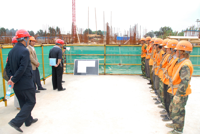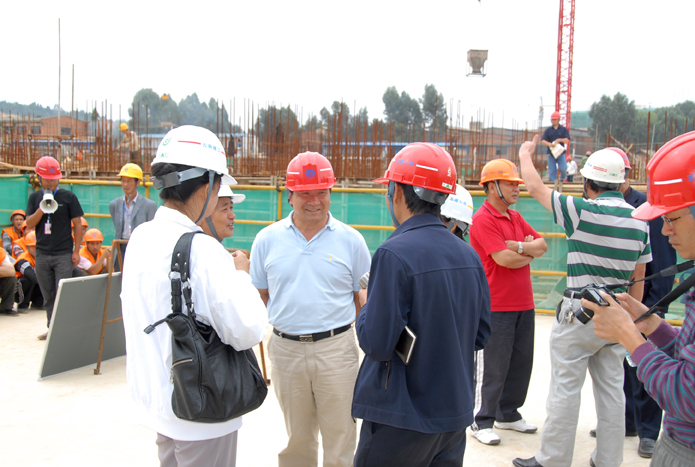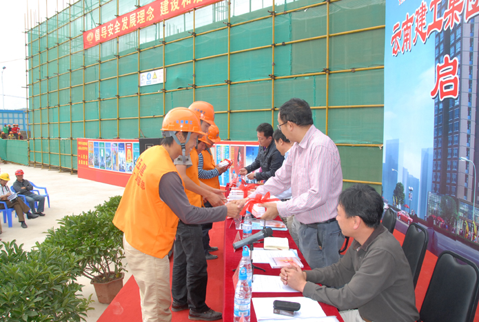 技術(shù)支持: 方森科技 2010年8月25日上午,集團公司在五公司第一直管部承建的第三城•丹槿園施工現(xiàn)場召開施工現(xiàn)場班組安全建設啟動儀式現(xiàn)場會。昆明市建筑安全監(jiān)督管理站站長梁少軍,集團公司副總經(jīng)理楊濤、安全總監(jiān)段益慶、生產(chǎn)安全處主任蘇雄斌,五公司董事長、黨委書記楊福和出席會議。會議由段益慶主持。